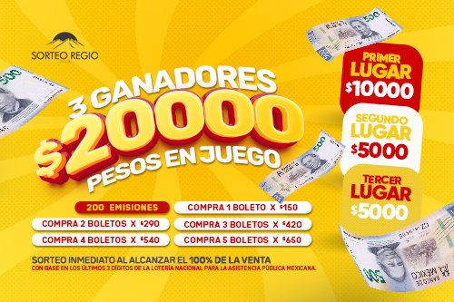 El ganador de SorteoRegioClub será el participante cuyo número de boleto coincida con las últimas cifras del primer premio ganador de la Lotería Nacional (las fechas serán publicadas en nuestra página oficial).